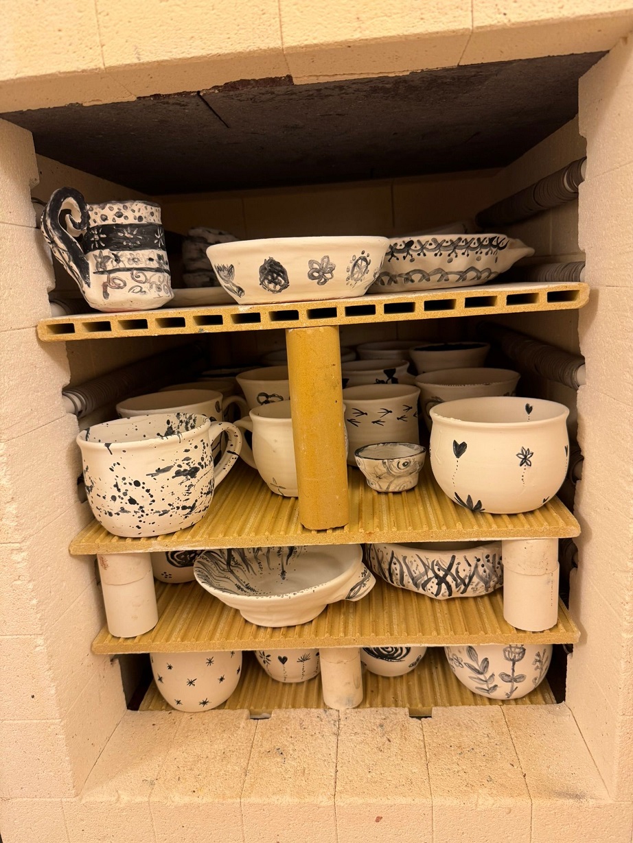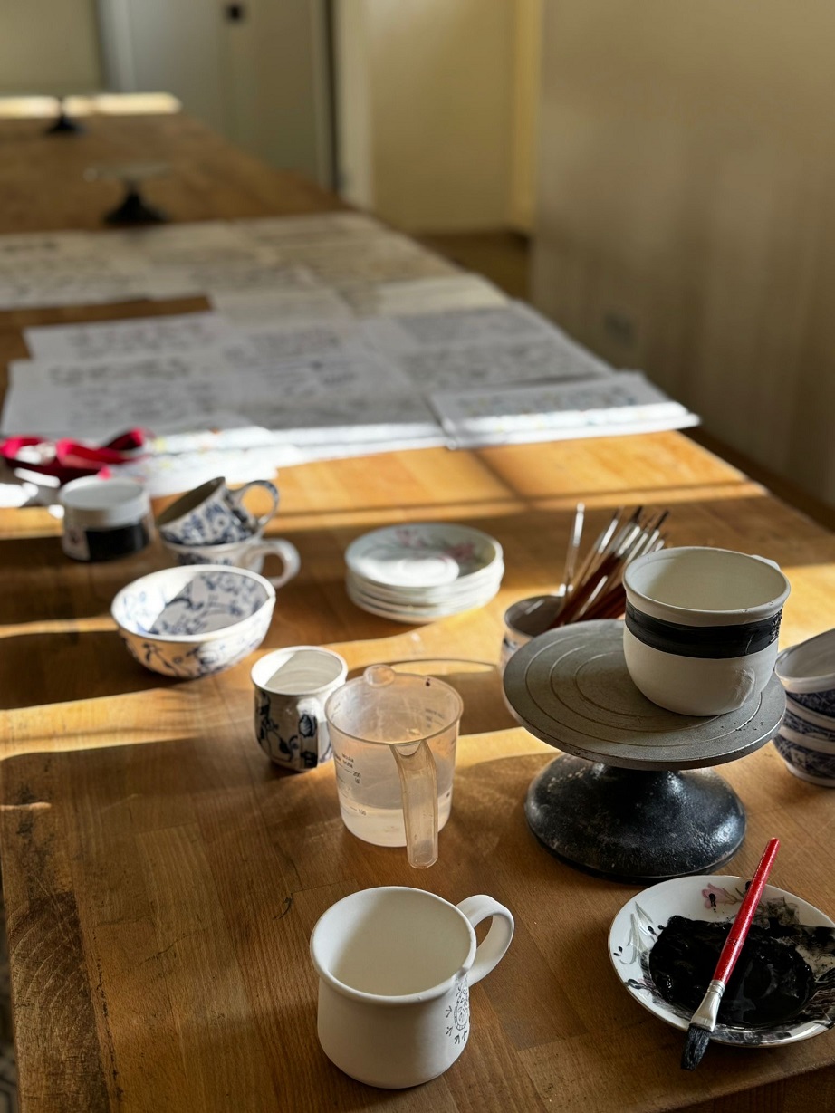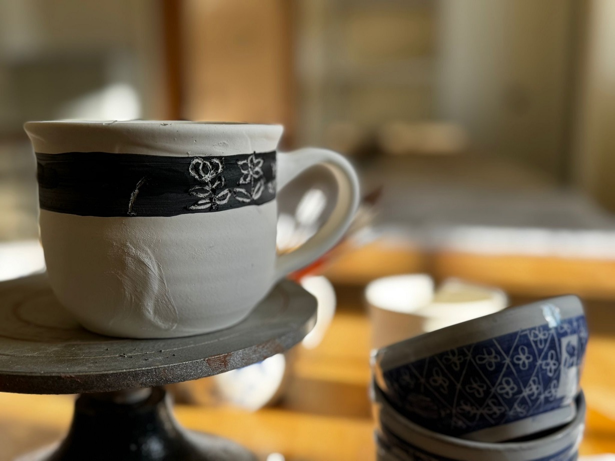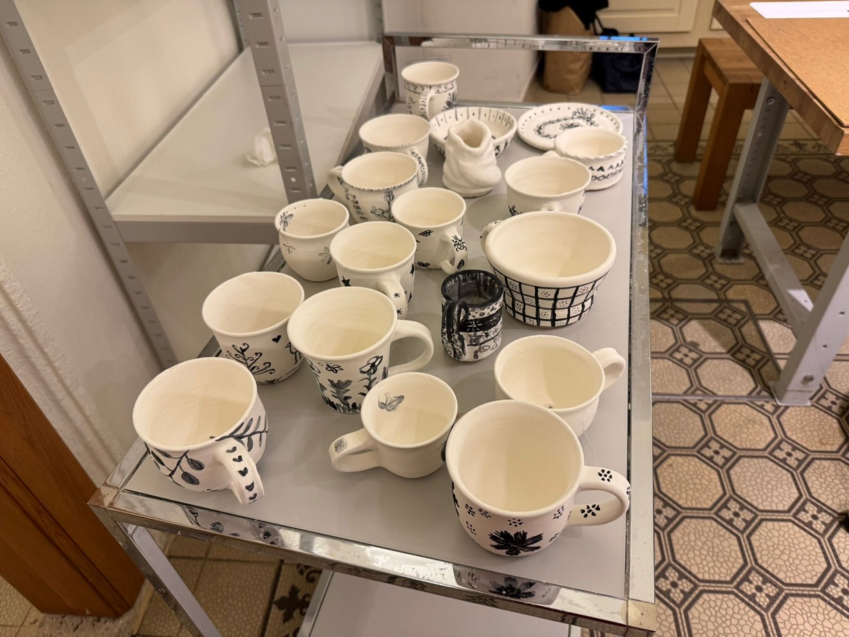 Dílna malování hrnků kobaltovou glazurou vedli zkušení keramici VĚRA BENEŠOVÁ a MICHAL NEDVĚD.