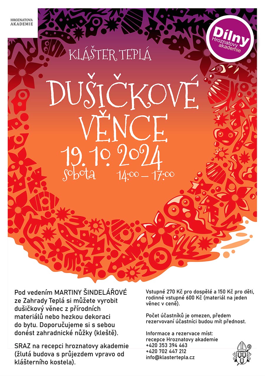 srdečně vás zveme v sobotu 19. října 2024 do výtvarných dílen tepelského kláštera na PODZIMNÍ DÍLNU DUŠIČKOVÝCH VĚNCŮ.